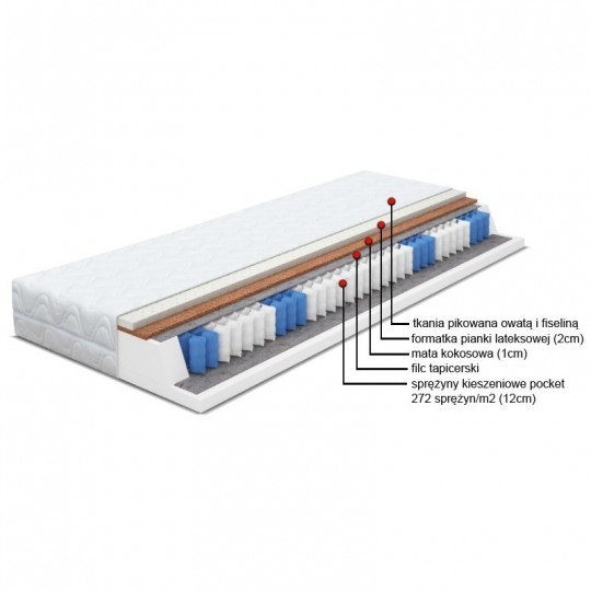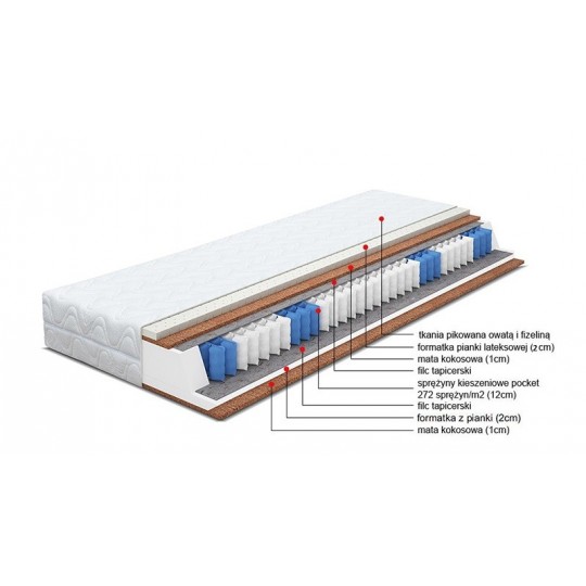 7-strefowa formatka kieszeniowa (POCKET) Formatka ta składa się ze sprężyn umieszczonych w osobnych kieszeniach dzięki temu są niezależne od siebie i elastyczne punktowo. Dodatkowo nie wydaje metalicznych dźwięków pod naciskiem ciężaru ciała. Formatka podzielona jest na 7-stref twardości. Każda z nich jest odpowiednio dopasowana do danej części ciała.